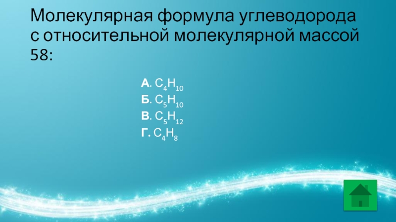 5. Молекулярная формула углеводорода с относительной молекулярной массой 56: