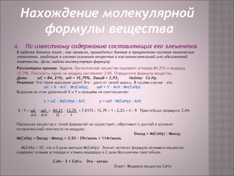 10. Выведите молекулярную формулу вещества по следующим данным: массовые доли углерода, кислорода и водорода соответственно равны 38,7%, 51,6% и 9,7%. Относительная плотность паров этого вещества по водороду равна 31.