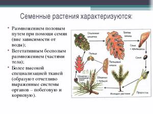В то время как низшие сосудистые растения, такие как плауны и папоротники, в основном гомоспоровые (продуцируют только один тип спор), все семенные растения, или сперматофиты , являются гетероспоровыми. Они образуют два типа спор: мегаспоры (женские) и микроспоры (мужские). Мегаспоры развиваются в женские гаметофиты, которые производят яйца, а микроспоры созревают в мужские гаметофиты, которые производят сперму. Поскольку гаметофиты созревают в спорах, они не являются свободноживущими, как гаметофиты других бессемянных сосудистых растений. Гетероспоровые бессемянные растения рассматриваются как эволюционные предшественники семенных растений.