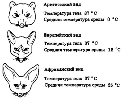 Из двух близ-ких видов или подвидов более крупные обитают в холодном климате, а более мелкие — в теплом.