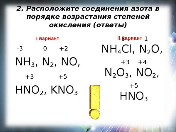 β ΡΡΠ΅ΠΏΠ΅Π½Ρ ΠΎΠΊΠΈΡΠ»Π΅Π½ΠΈΡ Π°Π·ΠΎΡΠ° +2; Π² Π°Π·ΠΎΡΠΈΡΡΠΎΠΉ ΠΊΠΈΡΠ»ΠΎΡΠ΅ β HNO2