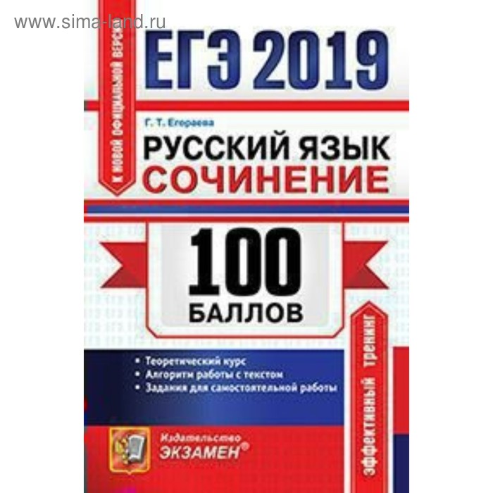 ЕГЭ 2019. Экзаменационный тренажер. Русский язык. 20 экзаменационных вариантов, Егораева Г.Т. | ISBN: 5-377-13633-0
